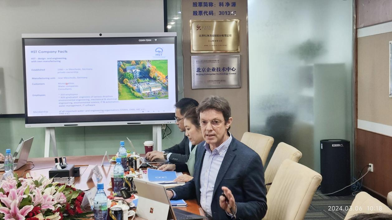 2023年底,葛敬董事長帶隊到德國HST公司進行實地考察交流。此次HST公司合伙人Thomas一行來華考察,旨在進一步了解中國水環(huán)境治理市場及科凈源公司。