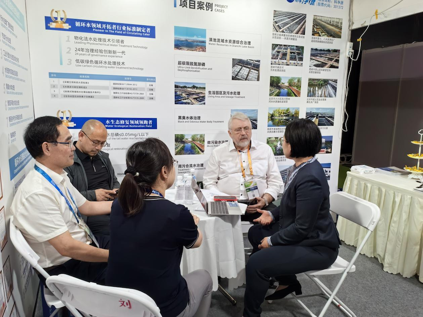 展會(huì)期間,公司國(guó)際部總監(jiān)葛琳曦女士親臨現(xiàn)場(chǎng),與多家國(guó)際知名企業(yè)的負(fù)責(zé)人進(jìn)行深入且富有成效的溝通。葛琳曦女士憑借其深厚的行業(yè)積淀與前瞻的戰(zhàn)略思維,為科凈源的國(guó)際合作打開(kāi)了新的局面,進(jìn)一步鞏固了公司在水處理領(lǐng)域的領(lǐng)先地位。