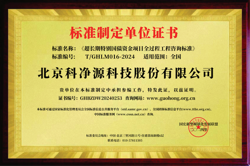 日前,由我司(北京科凈源科技股份有限公司,簡(jiǎn)稱“科凈源”)作為主要參編單位參與編制的《T/GHLM016-2024 超長(zhǎng)期特別國(guó)債資金項(xiàng)目全過(guò)程工程咨詢標(biāo)準(zhǔn)》自2024年8月1日起正式發(fā)布實(shí)施。