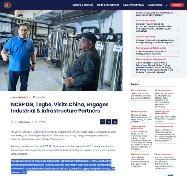 原文鏈接https://africachinanews.com/ncsp-dg-tegbe-visits-china-engages-industrial-infrastructure-partners/